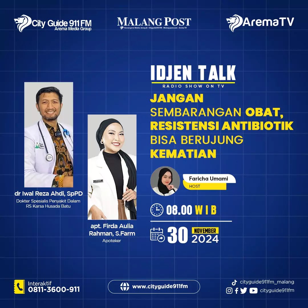 CITY GUIDE FM, IDJEN TALK – Tidak sedikit masyarakat yang membeli obat berjenis antiobiotik secara bebas tanpa resep dokter. Biasanya mereka sebelumnya mendapat resep ini dari dokter dan merasakan efeknya cukup bagus. Sehingga, selanjutnya ketika sakitnya kambuh mereka membeli obat itu tanpa resep dokter. Padahal ini bisa menjadi penyebab resistensi antibiotik loh!