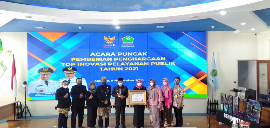 Selasa (9/11) Walikota Malang Sutiaji menerima penghargaan Top Inovasi Pelayanan Publik 2021 untuk Kota Malang dari Kemenpan-RB, penghargaan diterima secara virtual di NCC Balaikota Malang.