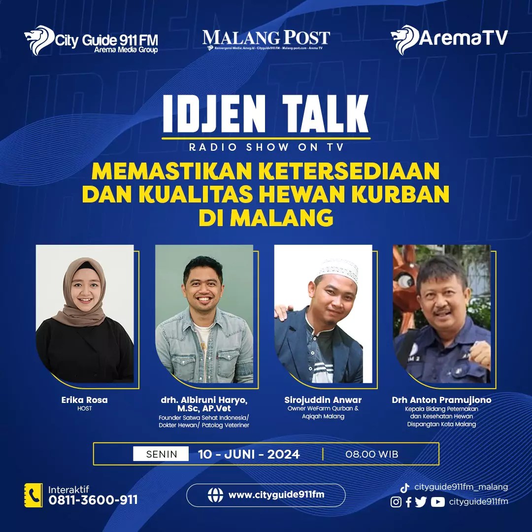 CITY GUIDE FM, IDJEN TALK – Kabid Peternakan dan Kesehatan Hewan Dinas Ketahanan Pangan dan Pertanian Kota Malang drh Anton Pramujiono mengatakan kebutuhan hewan kurban kambing dan sapi mencapai kurang lebih 6.700 ekor. Begitu pula tahun ini, kebutuhan akan hewan kurban kurang lebih sama.