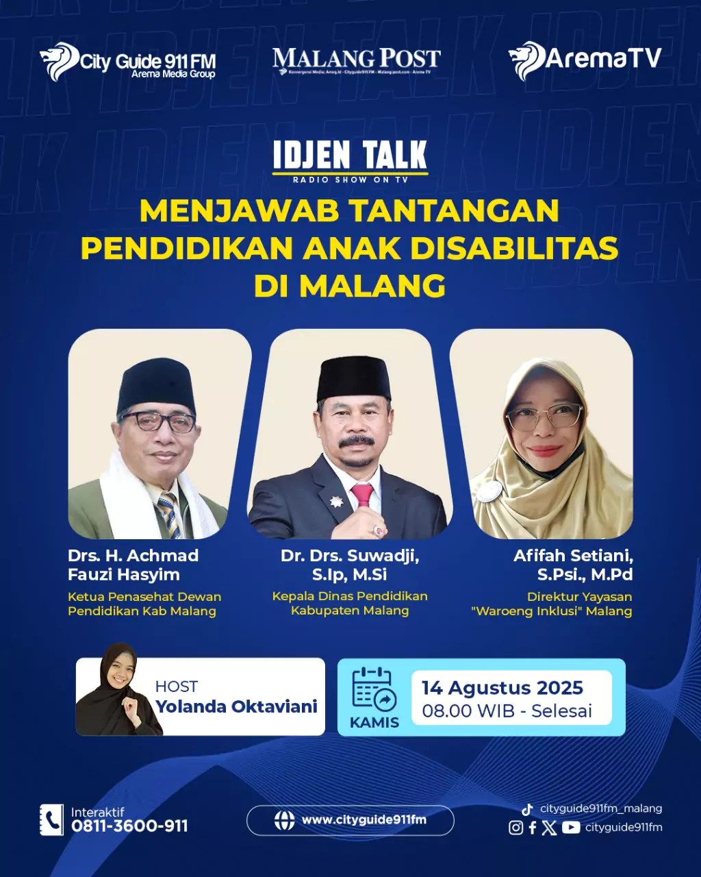 CITY GUIDE FM, IDJEN TALK – Pemerintah Kabupaten Malang mengajukan tambahan 2-3 Sekolah Luar Biasa (SLB). Kata Ketua Komisi IV DPRD Kabupaten Malang Zia Ulhaq, banyak anak berkebutuhan khusus (ABK) atau difabel di Kabupaten Malang terutama dari daerah pinggiran yang belum mendapat akses pendidikan memadai.