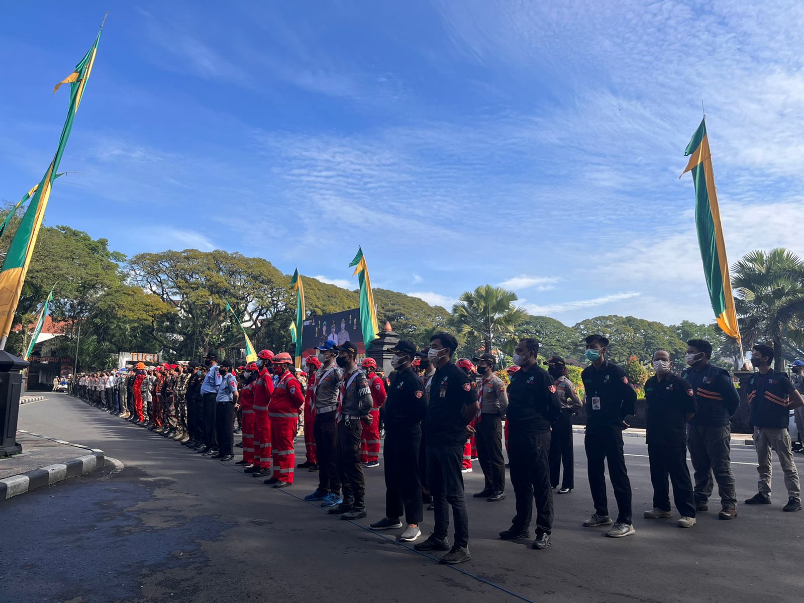 CITY GUIDE FM, KOTA MALANG – Forkopimda Kota Malang menggelar apel gelar pasukan Operasi Ketupat Semeru 2022 di halaman depan Balai Kota Malang, pada Jumat (22/4). Wakil Wali Kota Malang, Sofyan Edi Jarwoko memimpin apel yang melibatkan unsur personel gabungan dari Kodim 0833, Polresta Malang Kota, dinas perhubungan, BPBD, dinas kesehatan, dan Satpol PP.