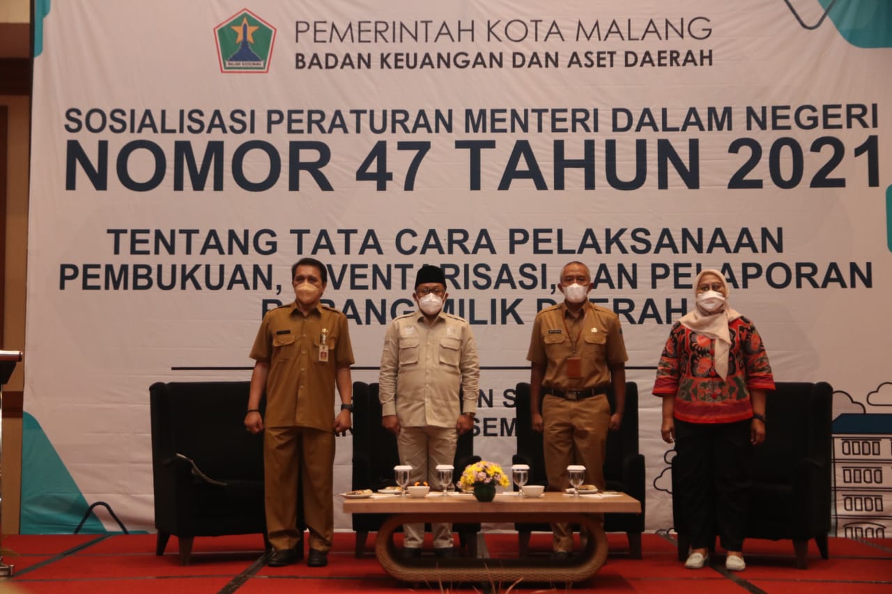 Senin (20/12) Pemkot Malang lewat Badan Keuangan dan Aset Daerah (BKAD) memberikan sosialisasi Permendagri Nomor 47 Tahun 2021, tentang Tata Cara Pelaksanaan Pembukuan Inventarisasi dan Pelaporan Barang Milik Daerah (BMD), di Ijen Suites Resort and Convention Hotel Malang.