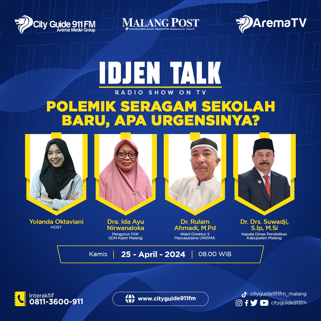 CITY GUIDE FM – Usulan pakaian adat menjadi seragam sekolah masih menjadi polemik di masyarakat. Dalam Idjen Talk yang bertajuk, “Polemik Seragam Sekolah Baru, Apa Urgensinya?“, Kepala Dinas Pendidikan Kabupaten Malang Suwadji mengatakan, pakaian seragam sekolah masih mengacu pada Permendikbudristek Nomor 50 Tahun 2022.