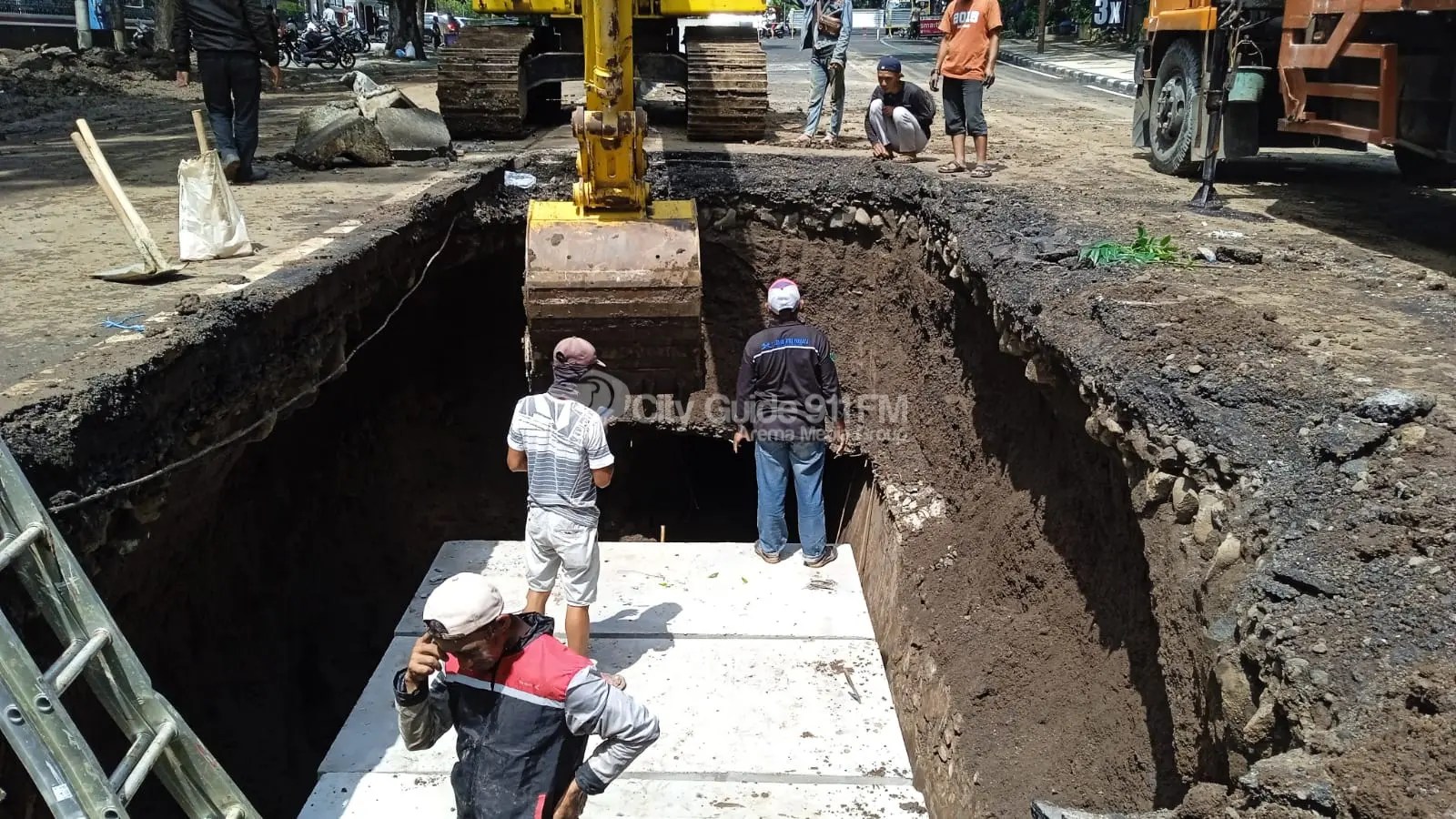 Pelaksana proyek Didi Cahyono mengatakan dimensi pengerukan lubang ini sepanjang delapan meter, lebar dua setengah meter dan kedalaman sekitar enam meter. Sejak Jumat pagi tadi (8/12), tahapan berlanjut dengan menanam box culvert ke dalam lubang.