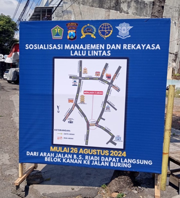 CITY GUIDE FM, KOTA MALANG – Dinas Perhubungan Kota Malang memutuskan untuk memperpanjang masa sosialisasi rekayasa lalu lintas di Jalan Brigjen Slamet Riadi. Sebelumnya, rekayasa lalu lintas itu mulai berlaku hari ini, Senin (26/8/2024). Akan tetapi, berdasarkan pantauan dari pendengar City Guide FM ternyata barrier yang menutup akses ke Jalan Buring masih terpasang.