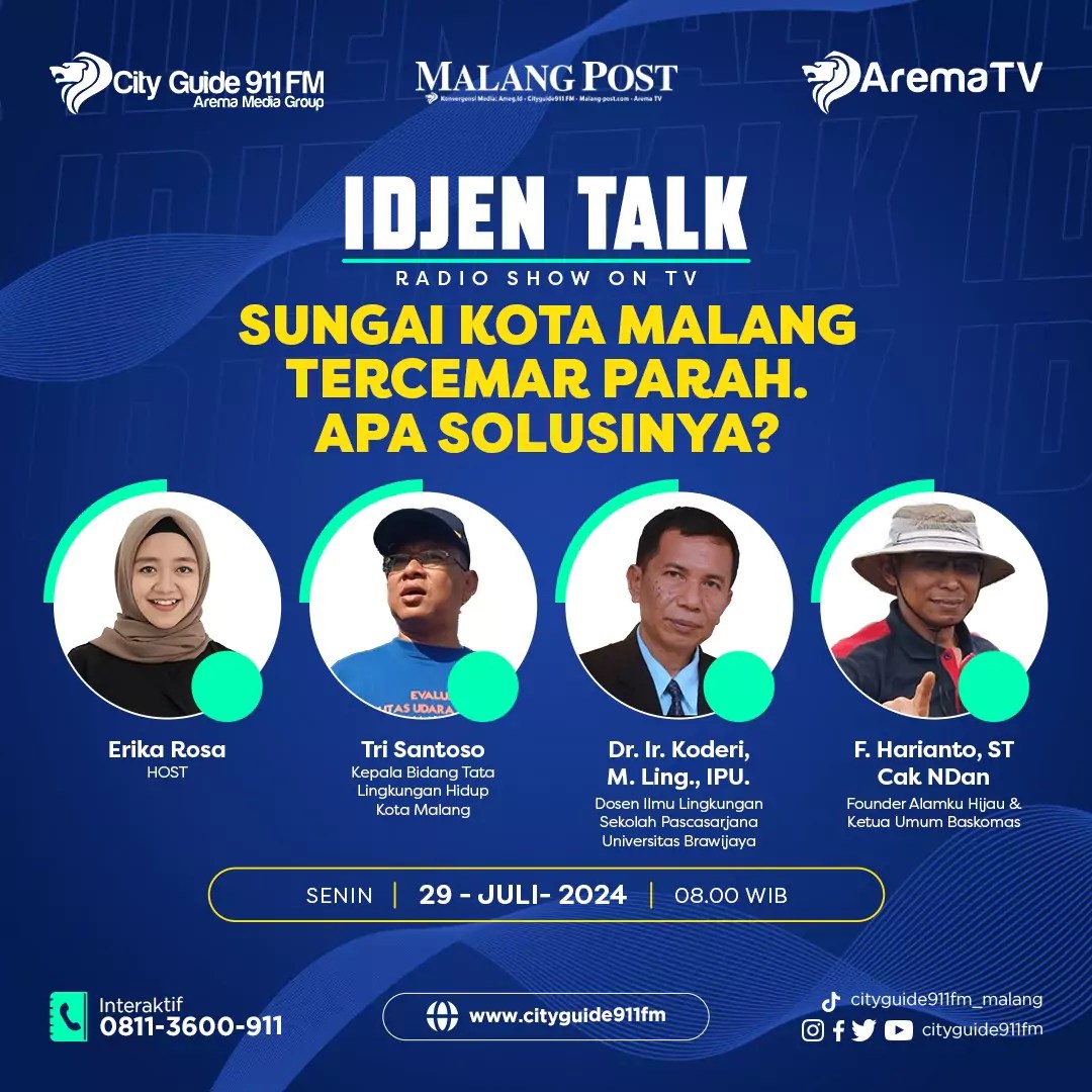 CITY GUIDE FM, IDJEN TALK – Kepala Bidang Tata Lingkungan Hidup DLH Kota Malang Tri Santoso menjelaskan sembilan aliran sungai di Kota Malang saat ini berstatus sedang. Kondisi ini memiliki arti yang kurang baik untuk Kota Malang, jika melihat letak geografisnya dekat dengan sumber mata air limpahan dari Kota Batu.