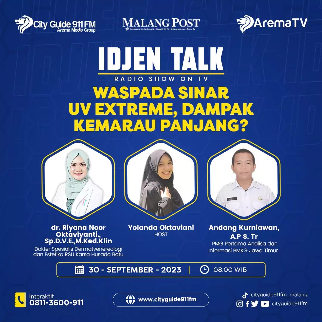 CITY GUIDE FM, IDJEN TALK – Musim kemarau yang terjadi pada tahun ini memang sedikit lebih lama. Maka dari itu, masyarakat perlu waspada terkait paparan sinar UV dari matahari yang dapat menimbulkan gangguan pada kulit.